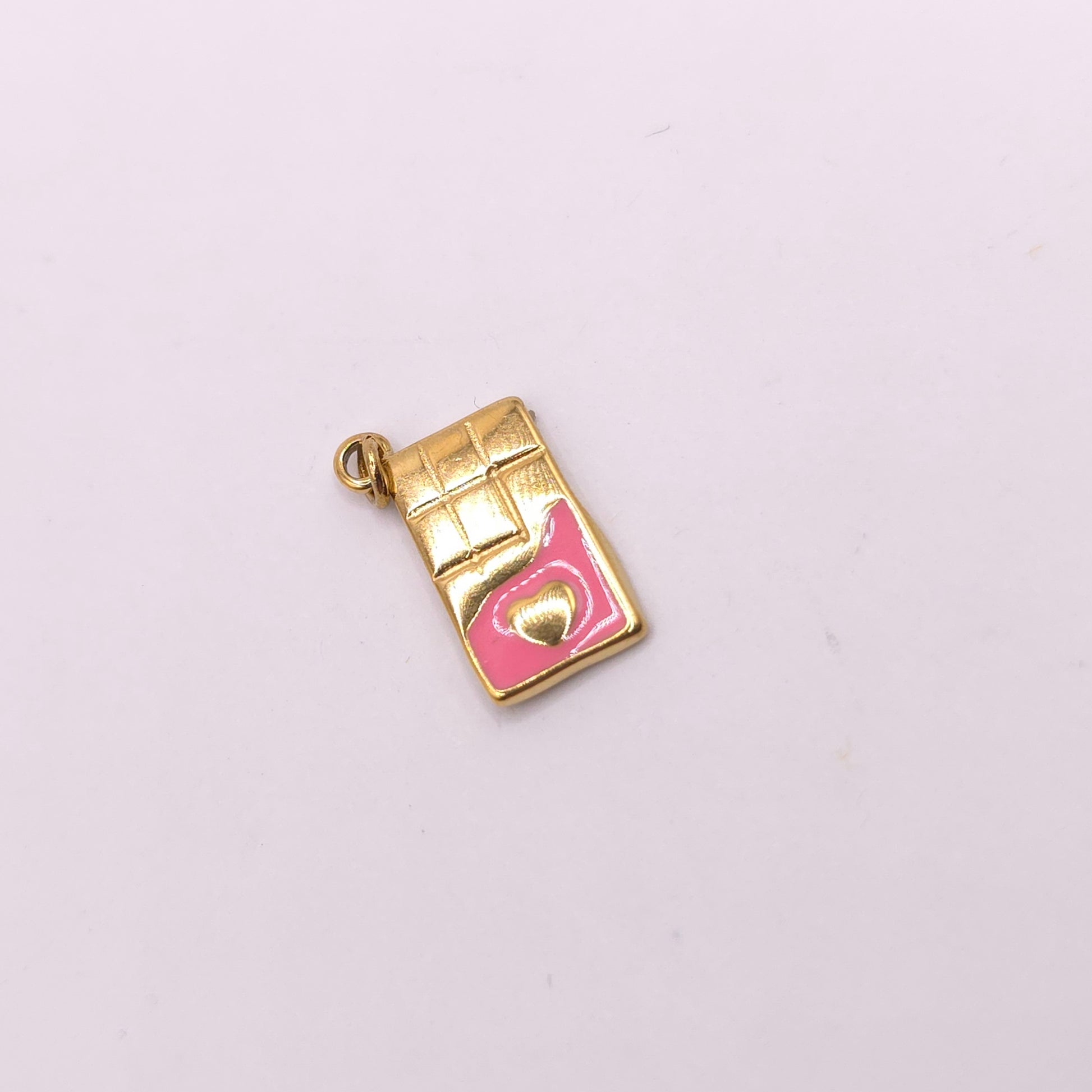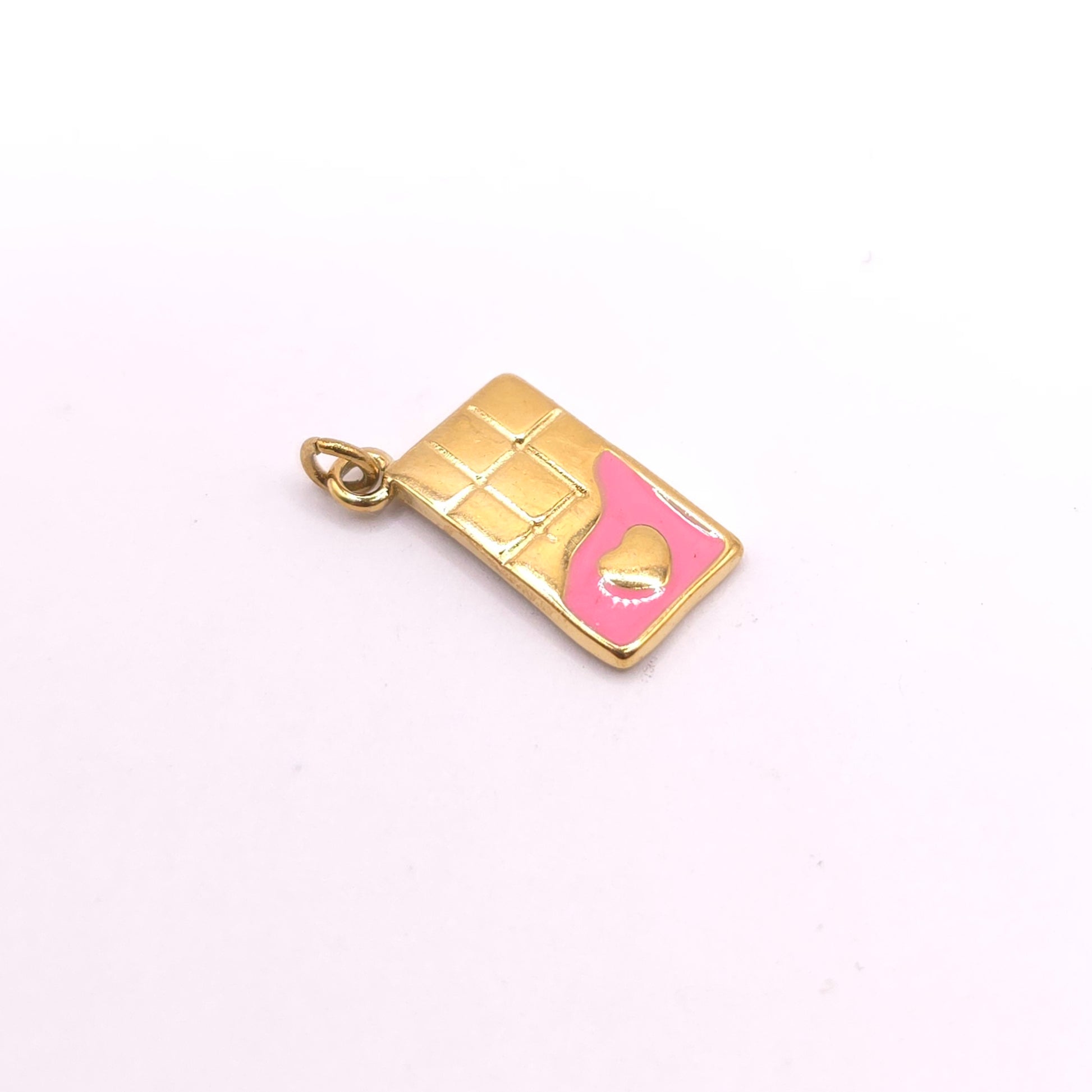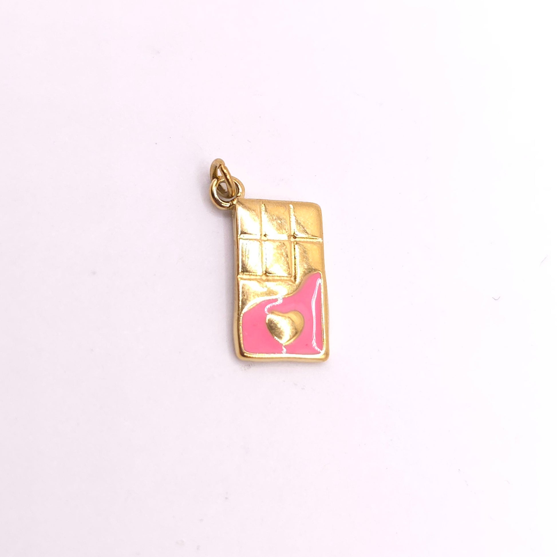 Nuestro colgante Tableta de Chocolate en acero chapado en oro con esmaltado rosa es puro sweet style: irresistible, original y con ese toque rosa que lo hace aún más tentador.