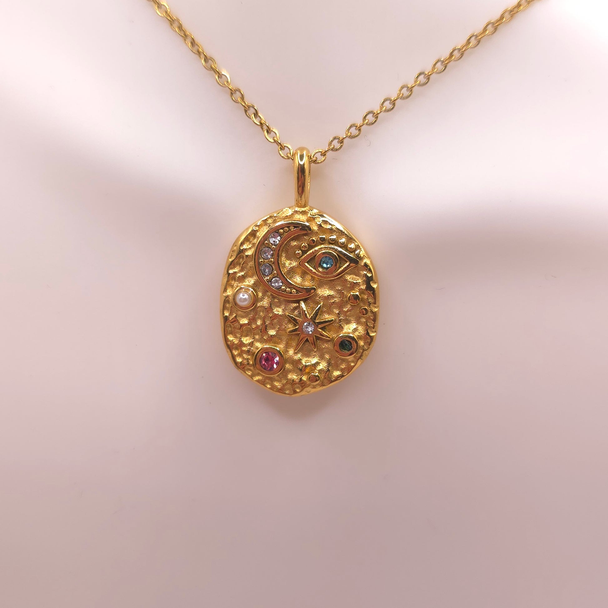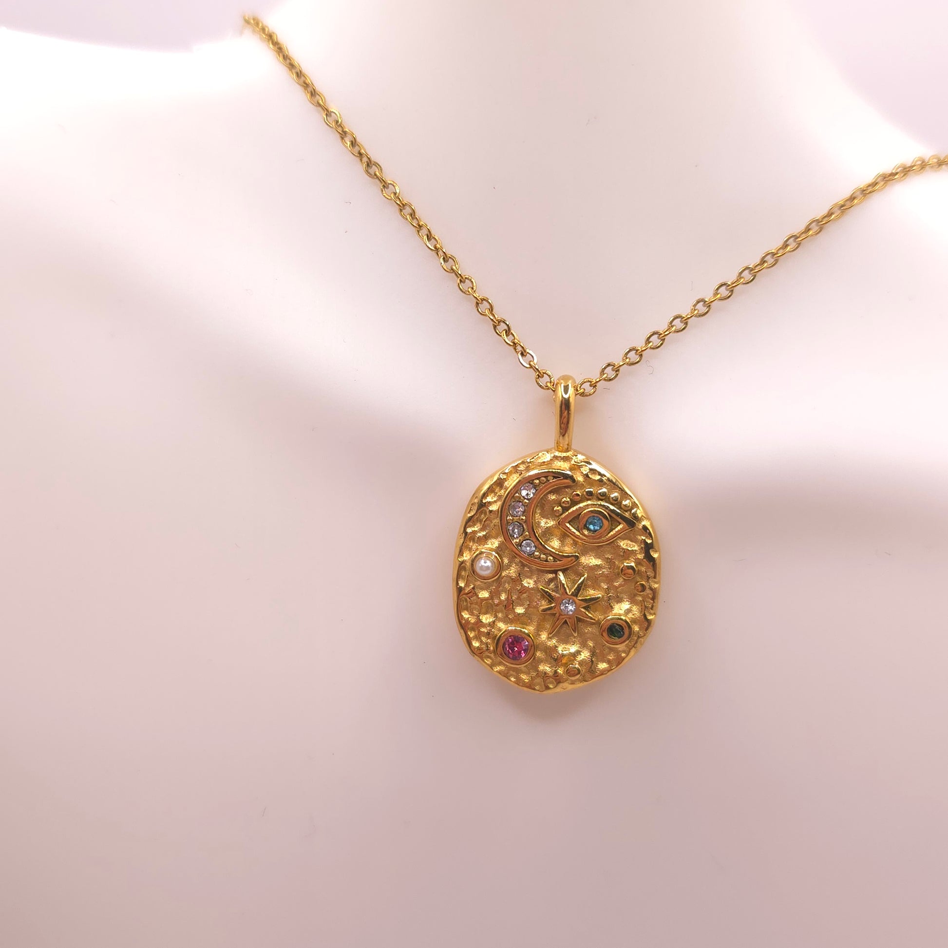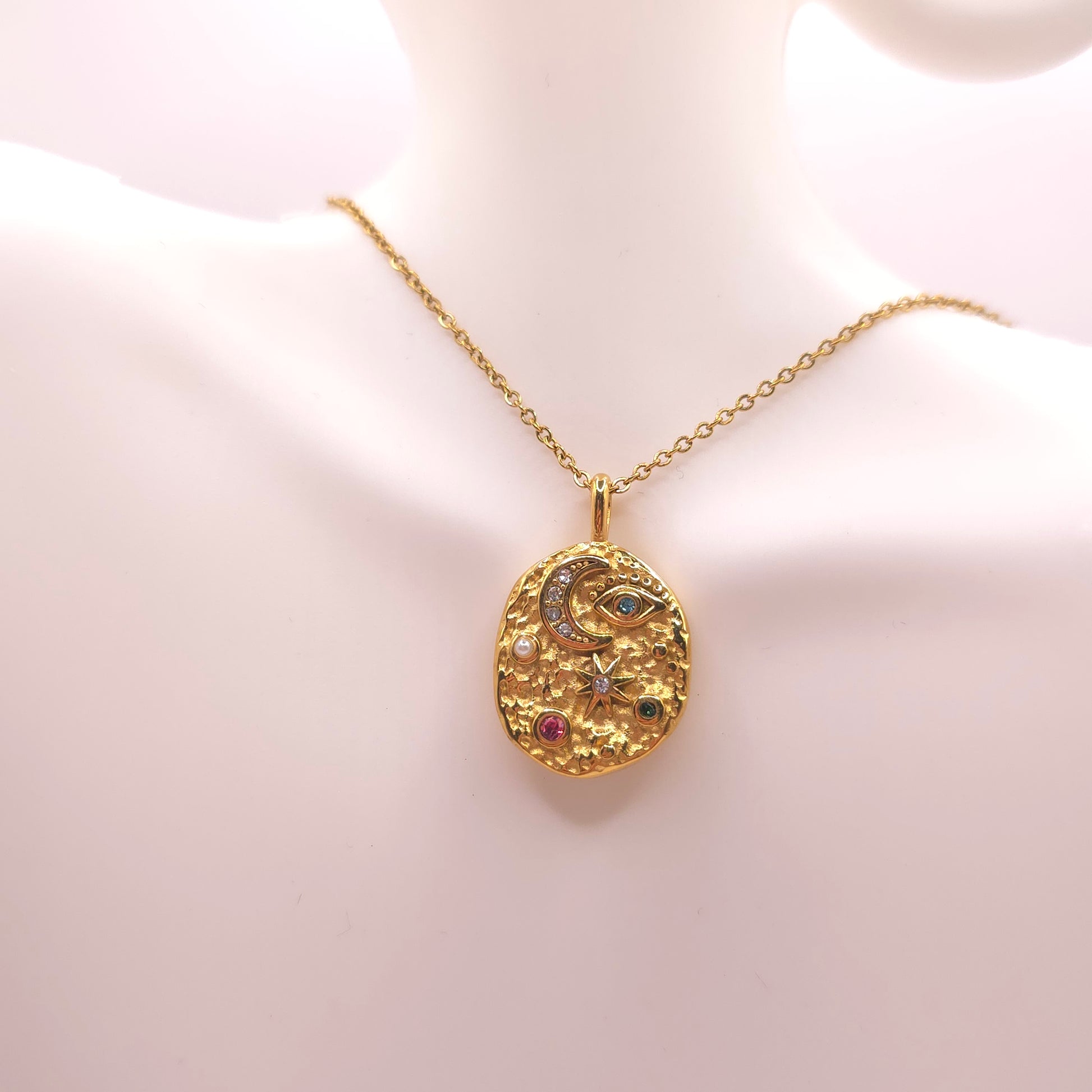 - Medidas: Cadena incluida de 40cm con alargo de 6cm. Alto de la pieza 2cm