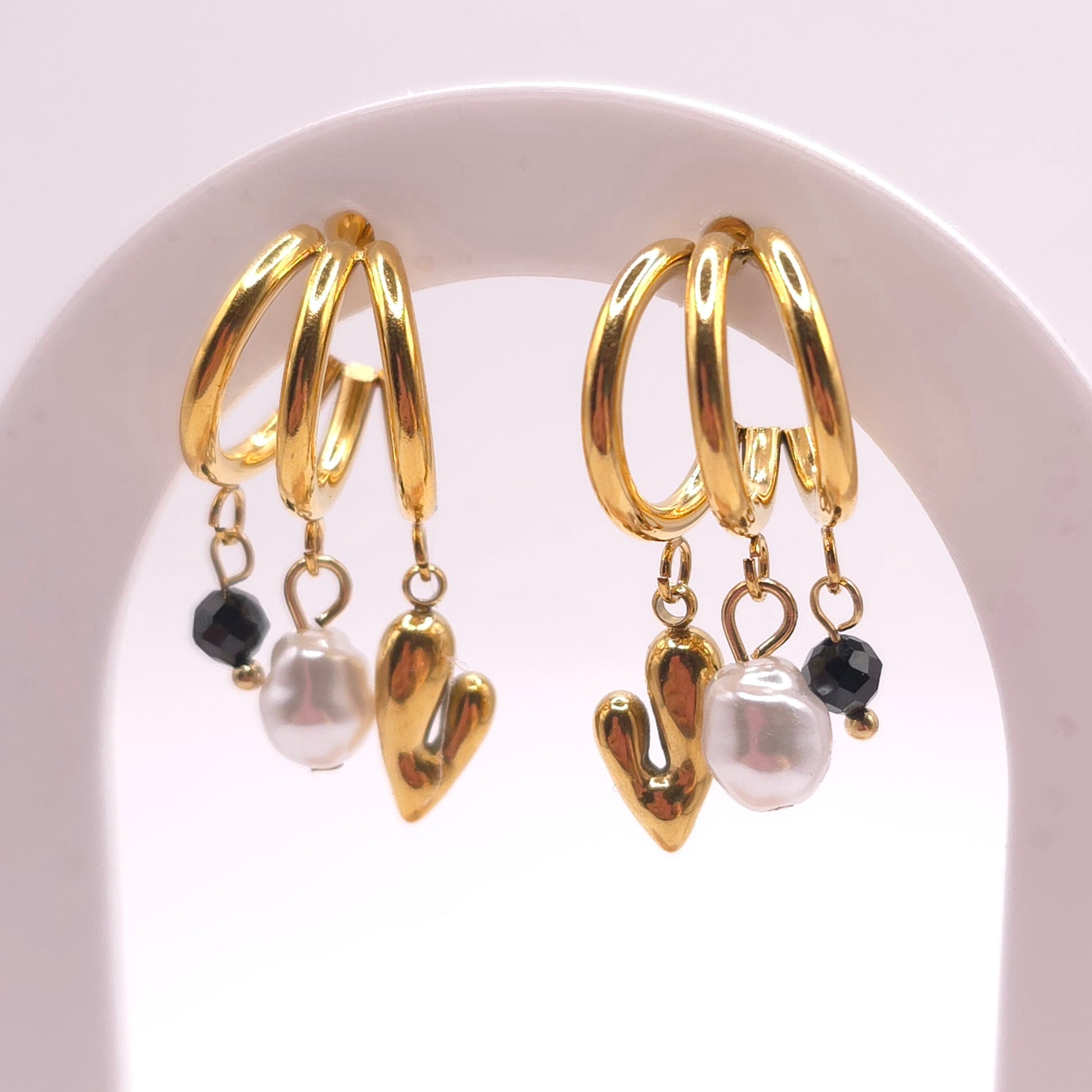 - Material: Acero inoxidable chapado en oro de 18k y dijes colgando.